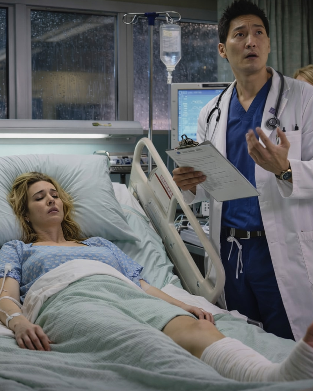 Een nieuwe patiënt werd klaargemaakt voor een operatie: een achtjarig meisje dat betrokken was geraakt bij een auto-ongeluk en inwendige bloedingen had. Haar angstige ouders stonden buiten de operatiekamer en hielden elkaar vast alsof ze aan het bidden waren.