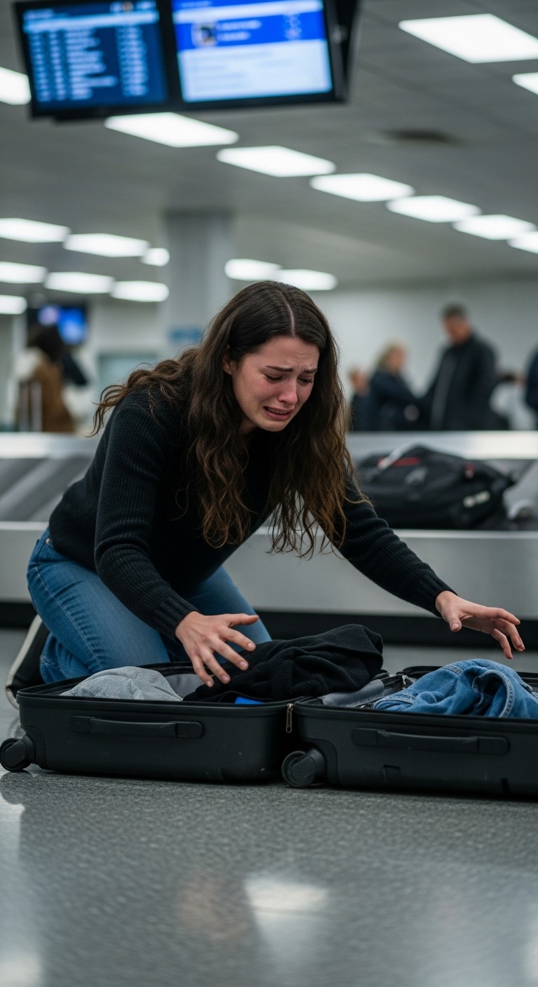 Ik laadde de zware tassen op een kar. Het gewicht deed me wankelen. Terwijl ik naar de uitgang duwde, bleef een wiel hangen, waardoor de bovenste koffer met een klap op de grond viel. Hij barstte open. James’ kleren verspreidden zich over het gepolijste linoleum – een tragisch confetti van een leven dat veel te vroeg eindigde.