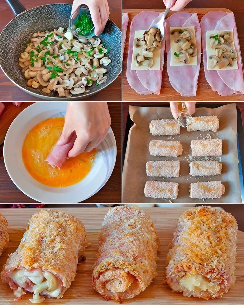 Involtini van gekookte ham, kaas en champignons: recept voor een heerlijk en levendig gerecht