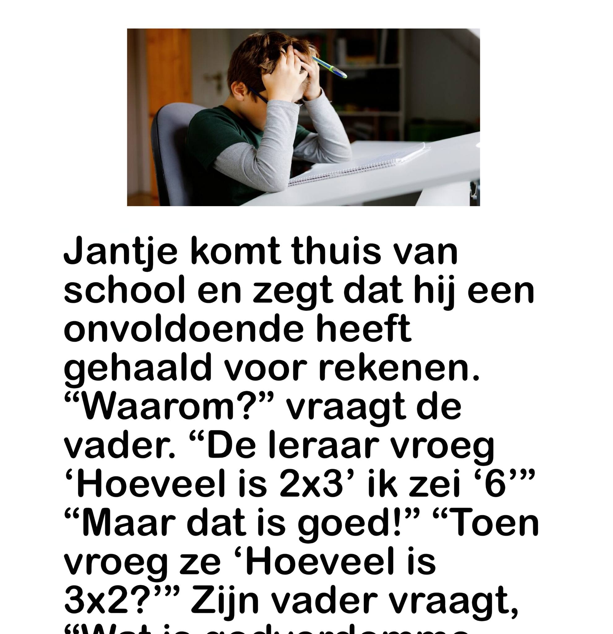 De jongen vervolgt: « Dat dacht ik ook. Maar toen vroeg ze me wat 2 keer 3 was. »