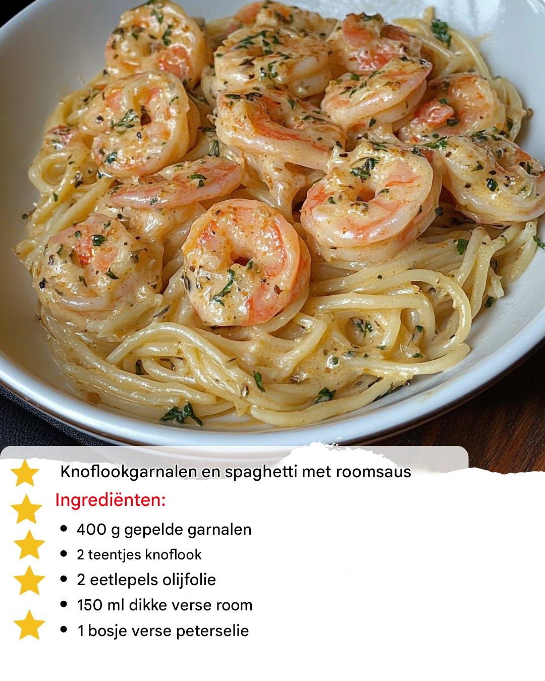 – Verhit de olijfolie in een grote koekenpan op middelhoog vuur. Voeg de gehakte knoflook toe en bak tot de knoflook een natuurlijke kleur en een rijke geur heeft, ongeveer 1 minuut. – Voeg de gepelde garnalen toe aan de pan en bak tot ze roze en ondoorzichtig zijn, ongeveer 3-4 minuten. Voeg naar smaak zout en peper toe. 3. Voeg de room toe:
