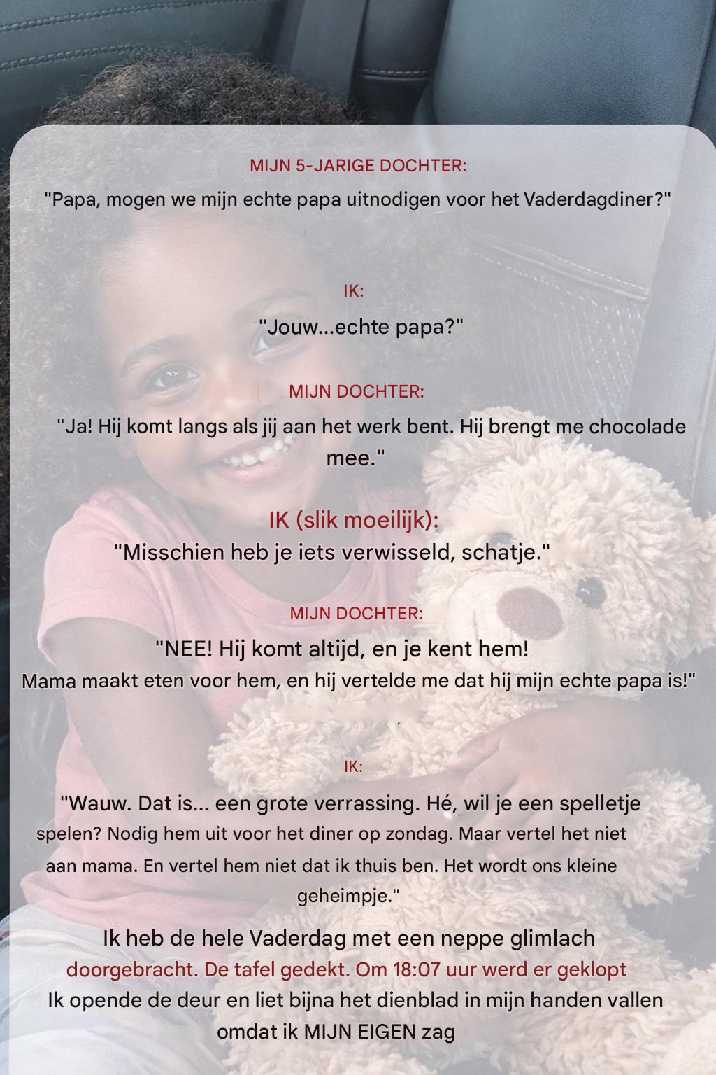 « Papa, mogen we mijn echte vader uitnodigen voor het Vaderdagdiner? »
