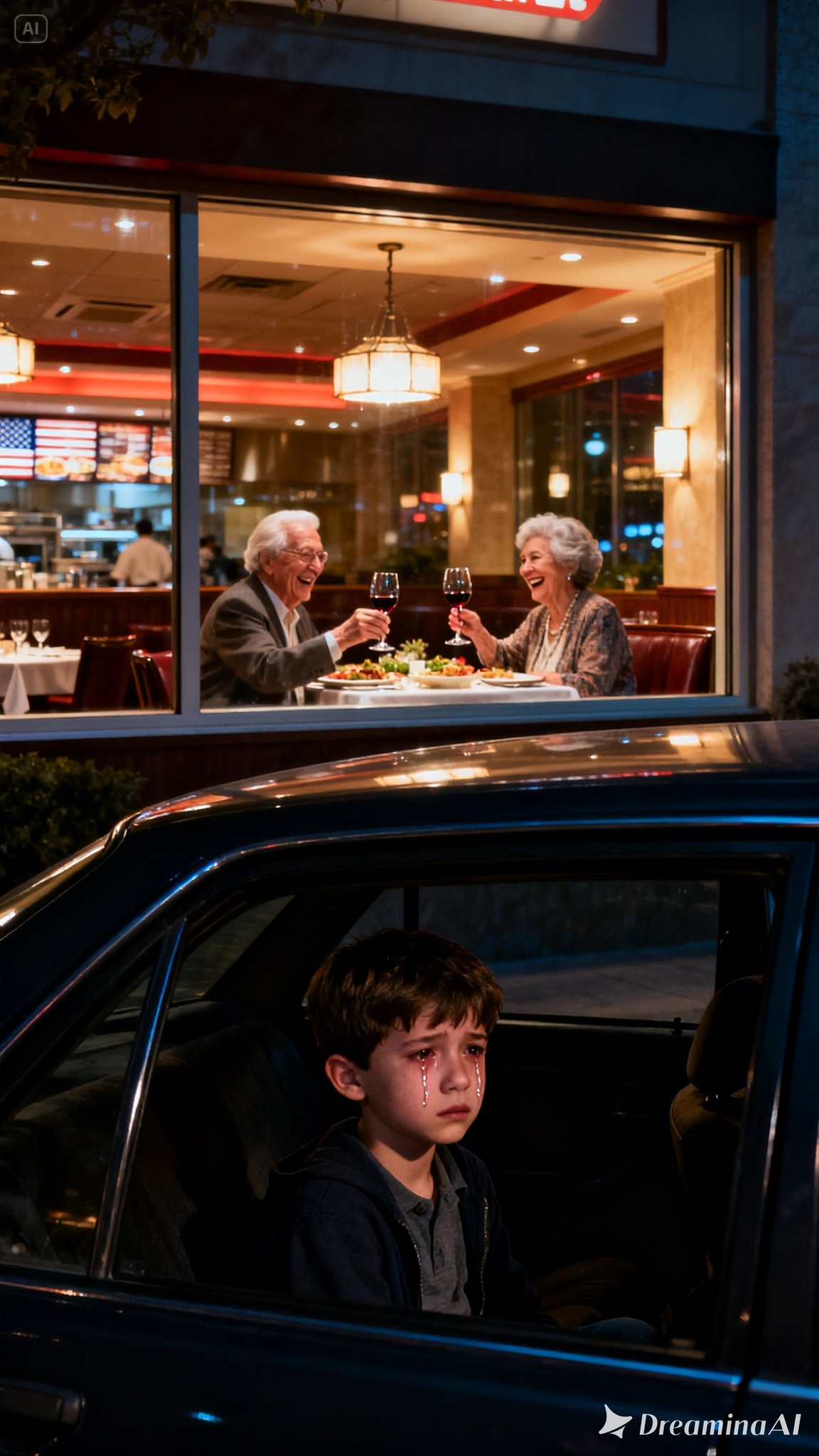 Hij deinsde achteruit en keek me aan met ogen die niet boos of bedroefd waren, maar verward. ‘Oma en opa. Ze zijn naar het Italiaanse restaurant gegaan. Ze hebben me in de geparkeerde auto achtergelaten. Ik heb twee uur gewacht.’