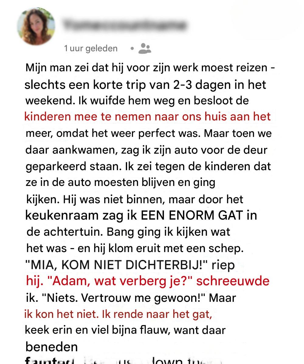 Mijn man beweerde dat hij op zijn werk was – en toen ontdekte ik hem terwijl hij achter ons huis aan het graven was
