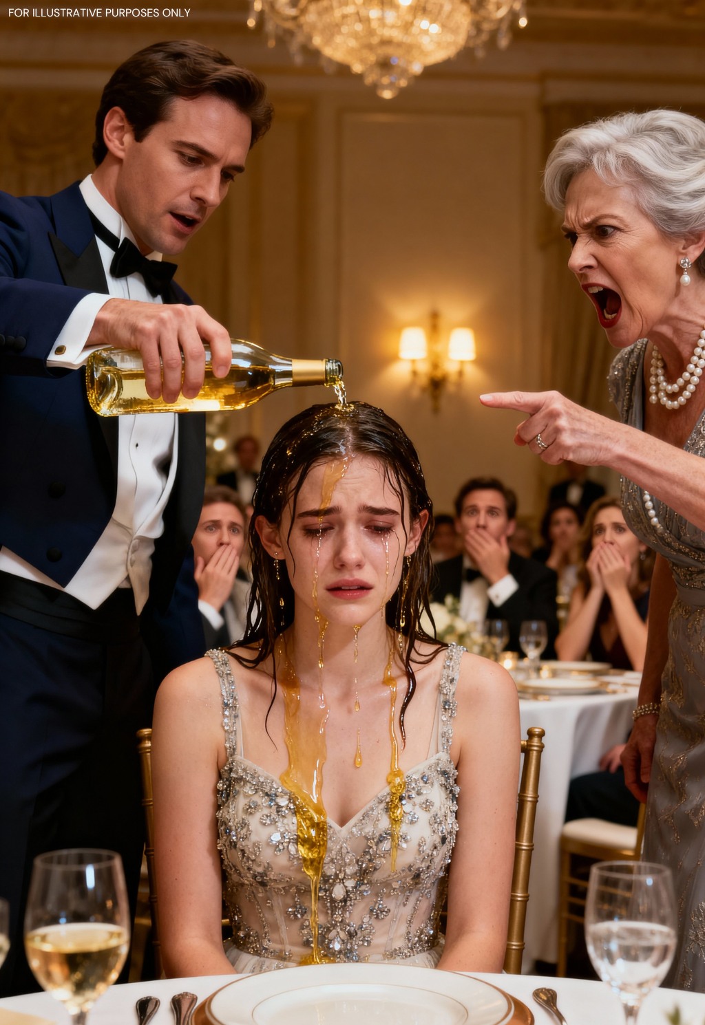 Voordat ze zich kon bewegen, goot hij de wijn over haar hoofd. De karmozijnrode vloeistof liep langs haar haar en maakte vlekken op haar jurk. De kamer werd stil, het enige geluid was Evelyns tevreden stem.