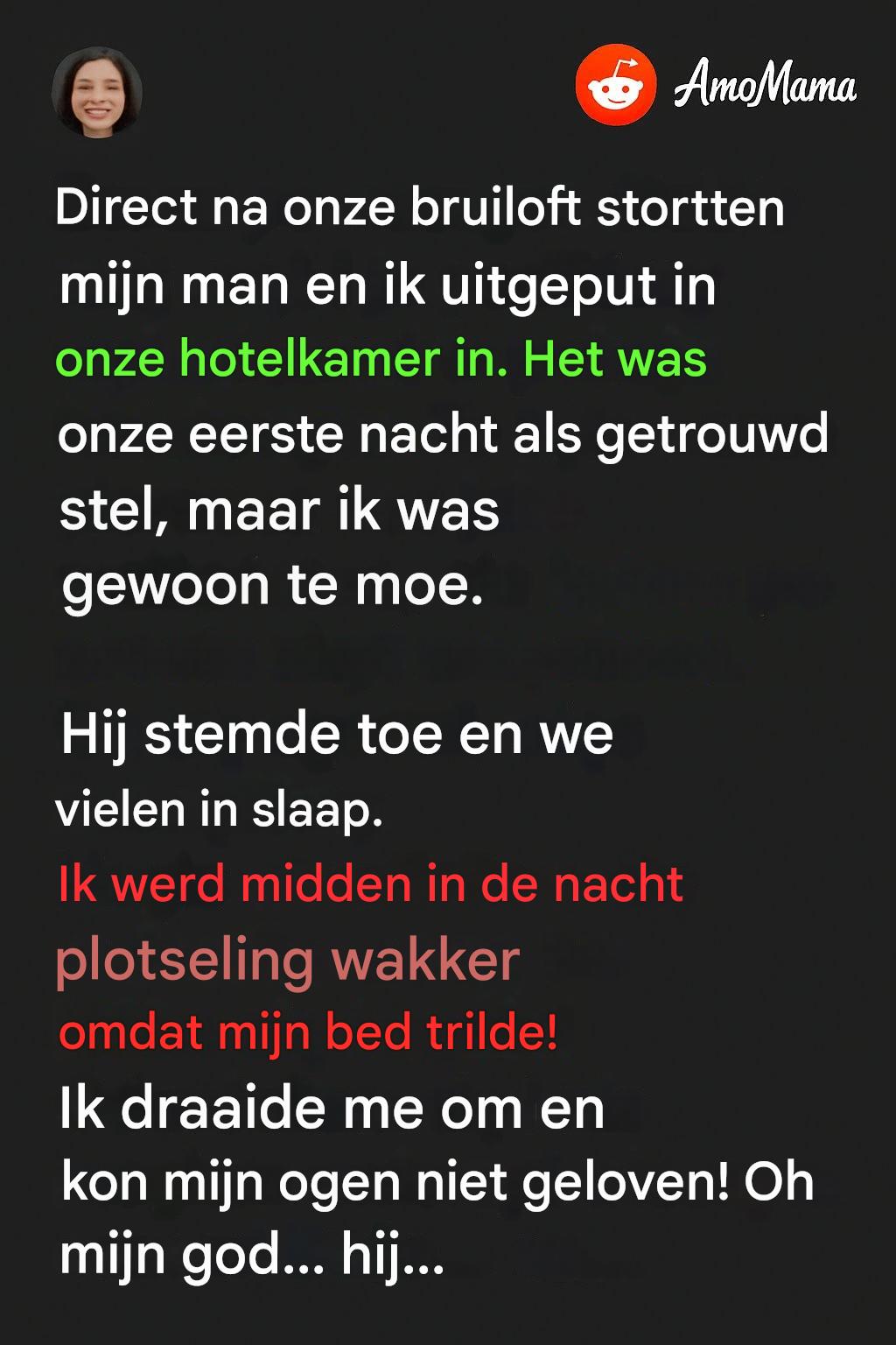 Op onze huwelijksnacht wilde mijn man, Scott, passioneel met me zijn, maar ik weigerde omdat ik moe was. Hij stemde toe en gaf me een welterustenzoen. Plotseling, om middernacht, voelde ik het bed schudden en draaide ik me om, maar ik verstijfde terwijl ik Scott het zag doen.