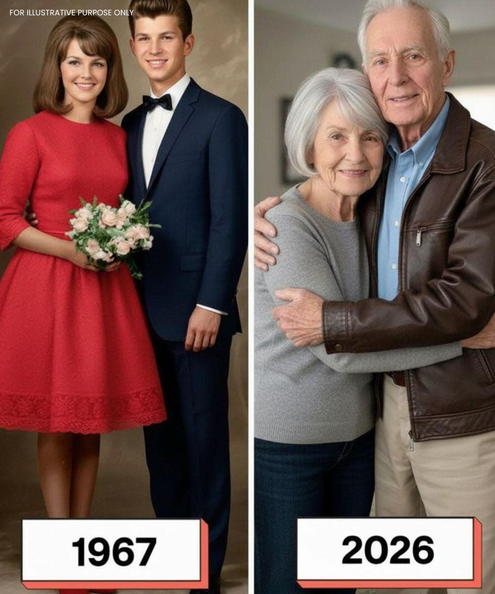 We ontmoetten elkaar tijdens de scheikundeles op de middelbare school omdat onze achternamen naast elkaar stonden. Hij maakte me aan het lachen. We trouwden toen we twintig waren, werkten in dezelfde fabriek, kregen vier kinderen en hebben nu kleinkinderen en een achterkleinkind.