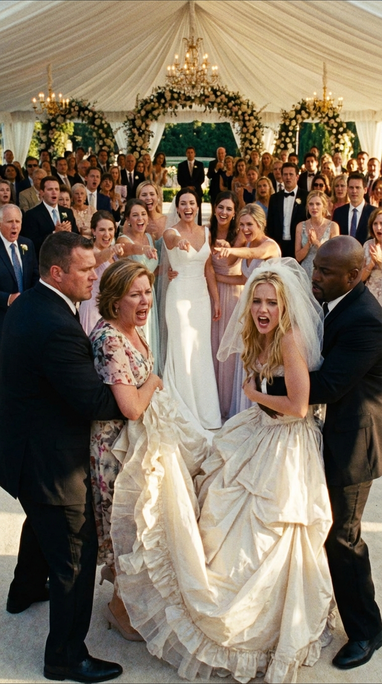 Twaalf foto’s in hoge resolutie. Een luxe bruidsboetiek aan West End Avenue . Mijn zus, Paige , stond op een rond podium, een driedelige spiegel reflecteerde haar vanuit elke hoek. Ze was gehuld in een lange, ivoorkleurige jurk – met een sweetheart-halslijn, ingewikkelde kanten applicaties en een sleep die eruitzag als een gevallen wolk. Het was geen jurk voor een gast. Het was een oorlogsverklaring.