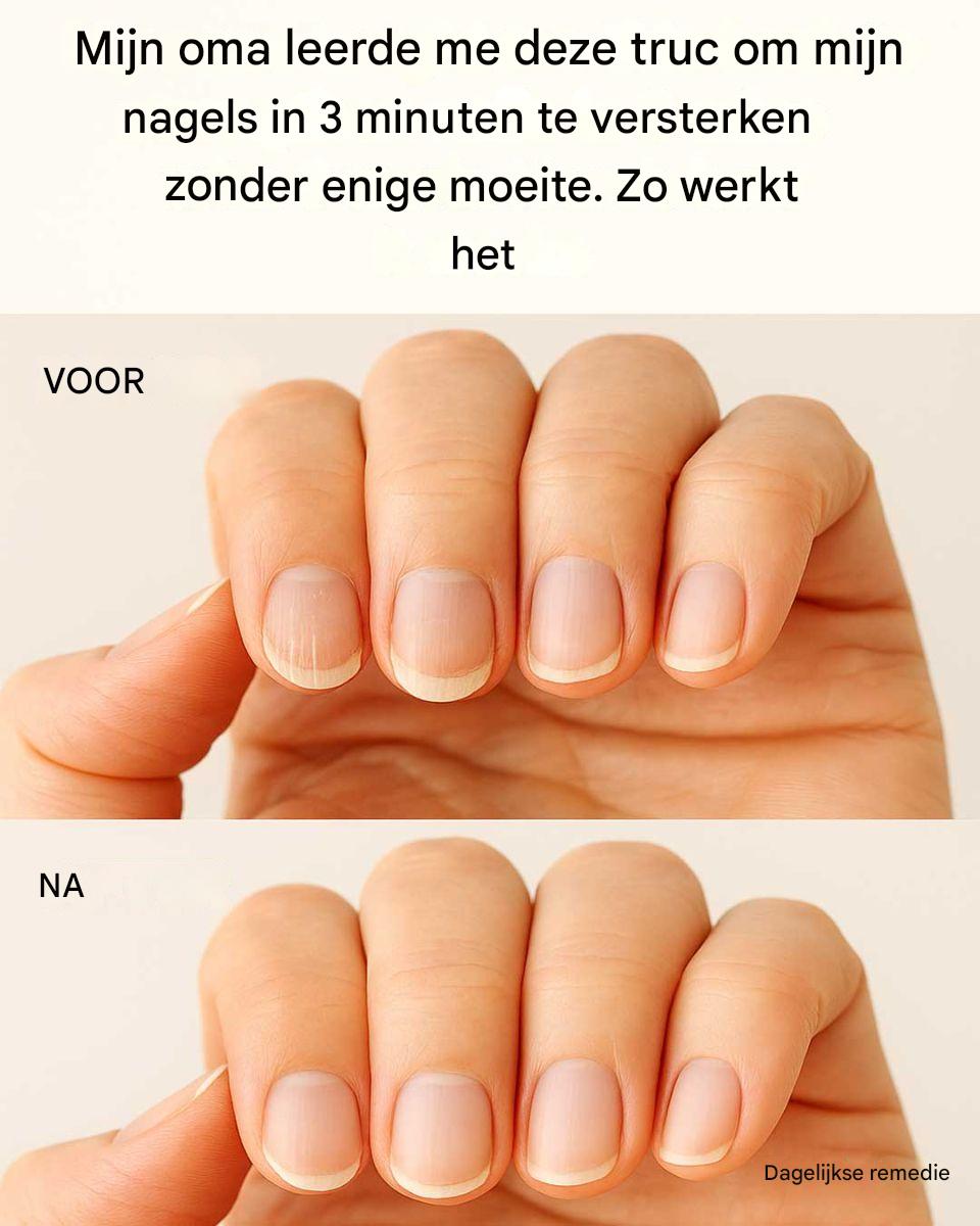 In de snelle wereld van vandaag staat voor onszelf zorgen vaak op de tweede plaats. Onze nagels, een van de meest blootgestelde delen van ons lichaam, lijden daar vaak onder. Ze worden dagelijks blootgesteld aan slijtage, wat kan leiden tot broosheid en breuk. Het onderhouden van sterke en gezonde nagels hoeft echter geen lastige taak te zijn. Mijn oma leerde me zelfs een simpele truc waarmee je je nagels in slechts drie minuten kunt versterken, zonder enige moeite.