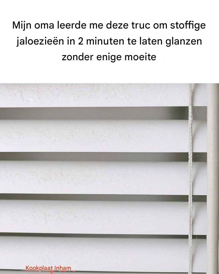 Mijn oma, met haar jarenlange wijsheid en talent voor huishoudelijke trucjes, leerde me een ongelooflijke truc waarmee stoffige jaloezieën in slechts twee minuten in een glimmende bril veranderen. Deze eenvoudige maar effectieve methode vereist geen enkele inspanning en maakt gebruik van alledaagse huishoudelijke artikelen. Zo krijg je moeiteloos die glinsterende jaloezieën.