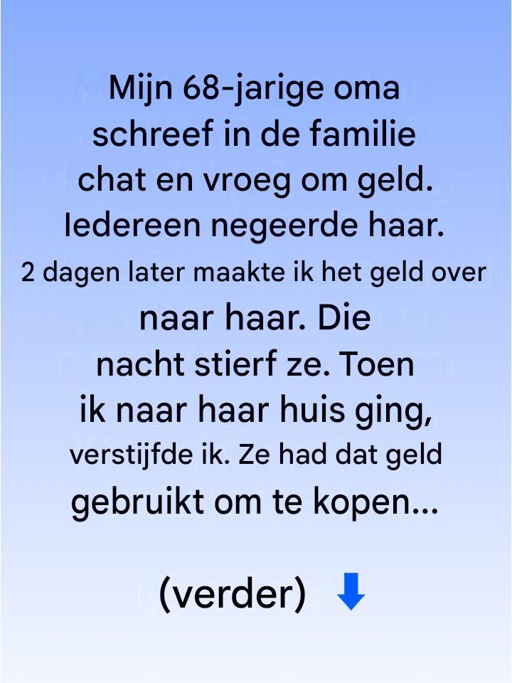 Het bericht bleef daar liggen, door de meesten ongelezen — door anderen genegeerd. Iedereen had het druk, iedereen ging ervan uit dat het wel goed met haar zou komen.