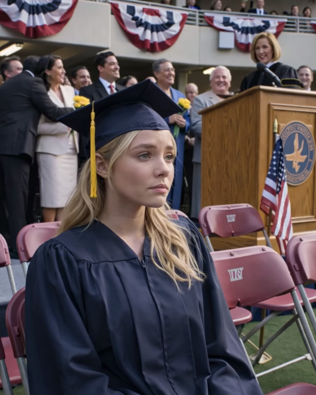 Mijn naam is Clara. Ik ben 28 jaar oud. Op de dag dat ik afstudeerde aan een van de meest prestigieuze medische faculteiten van het land, zat ik in een enorm stadion, omringd door 10.000 juichende ouders, met een sms’je van mijn moeder in mijn hand dat me de rillingen over de rug bezorgde. Ik keek uit over de immense zee van trotse families met boeketten bloemen en kleurrijke spandoeken, en zocht naar mijn vier toegewezen VIP-plaatsen op de eerste rij. Ze waren helemaal leeg. Mijn ouders, David en Valerie, hadden besloten mijn diploma-uitreiking over te slaan. Ze misten het niet vanwege een medisch noodgeval of een geannuleerde vlucht.