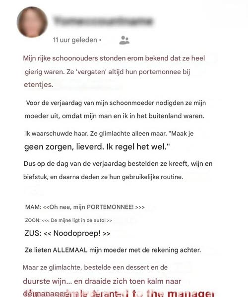 De bekende ouders van mijn man “vergeten” hun portemonnee elke keer dat ze in het restaurant hadden gegeten – een handige fout die anderen liet betalen voor hun weelderige maaltijden. Ik was er vaker getuige van geweest dan ik kon tellen.