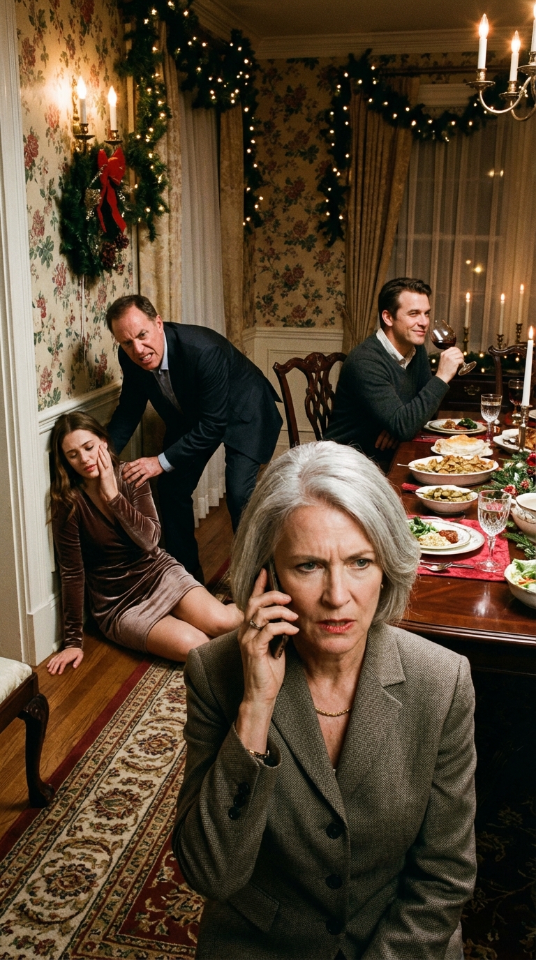 Het misselijkmakende geluid van huid die bot raakte, galmde door onze feestelijke eetkamer en verbrijzelde de kerstsfeer als een baksteen die door een glas-in-loodraam werd gegooid.