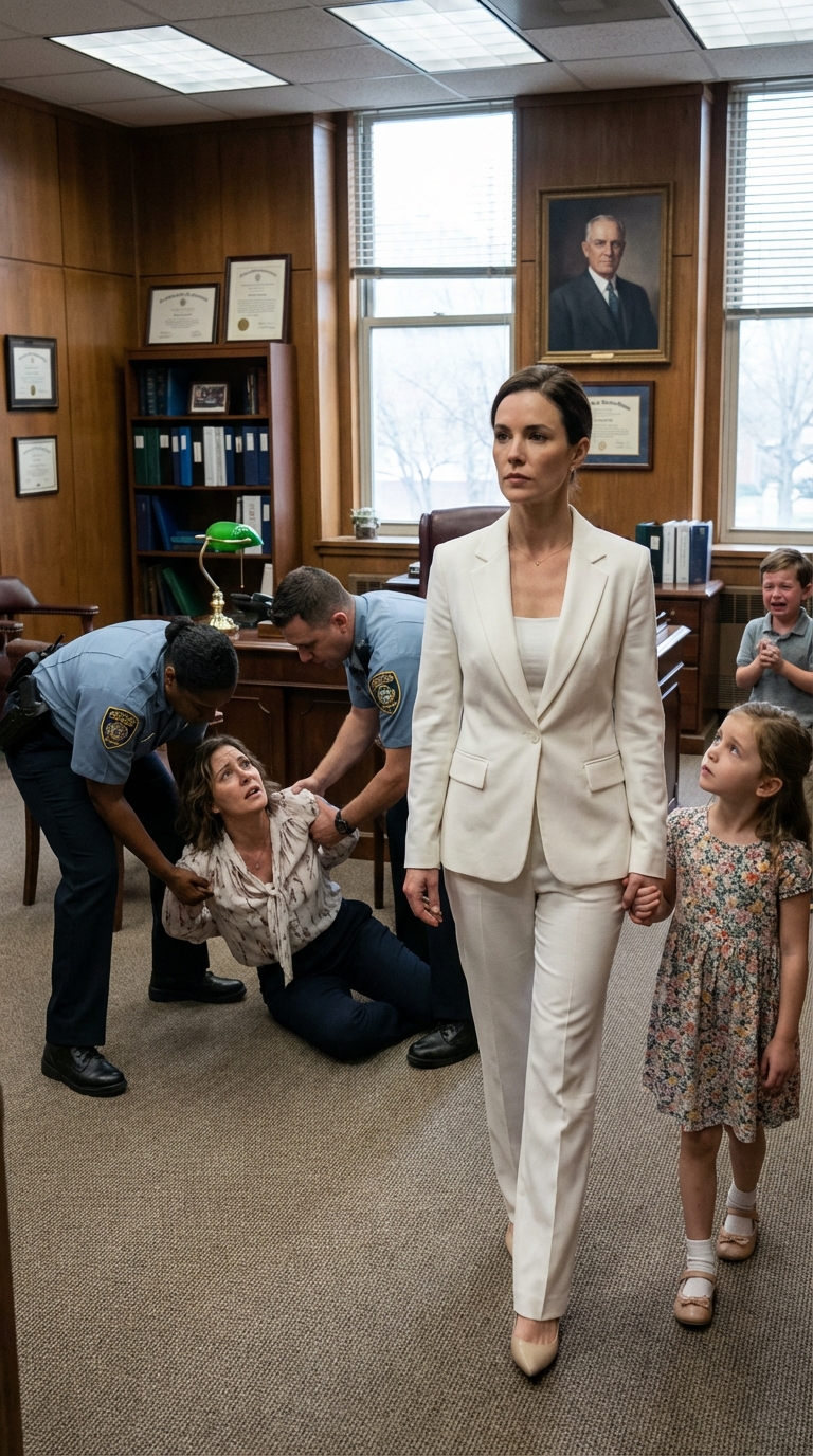 Karen keek de kamer rond, haar ogen schoten heen en weer met een mengeling van angst en superioriteit. Toen haar blik op mij viel, zakten haar schouders en verscheen er een grijns in de hoek van haar lippen. De spanning verdween uit haar lichaam en maakte onmiddellijk plaats voor minachting.