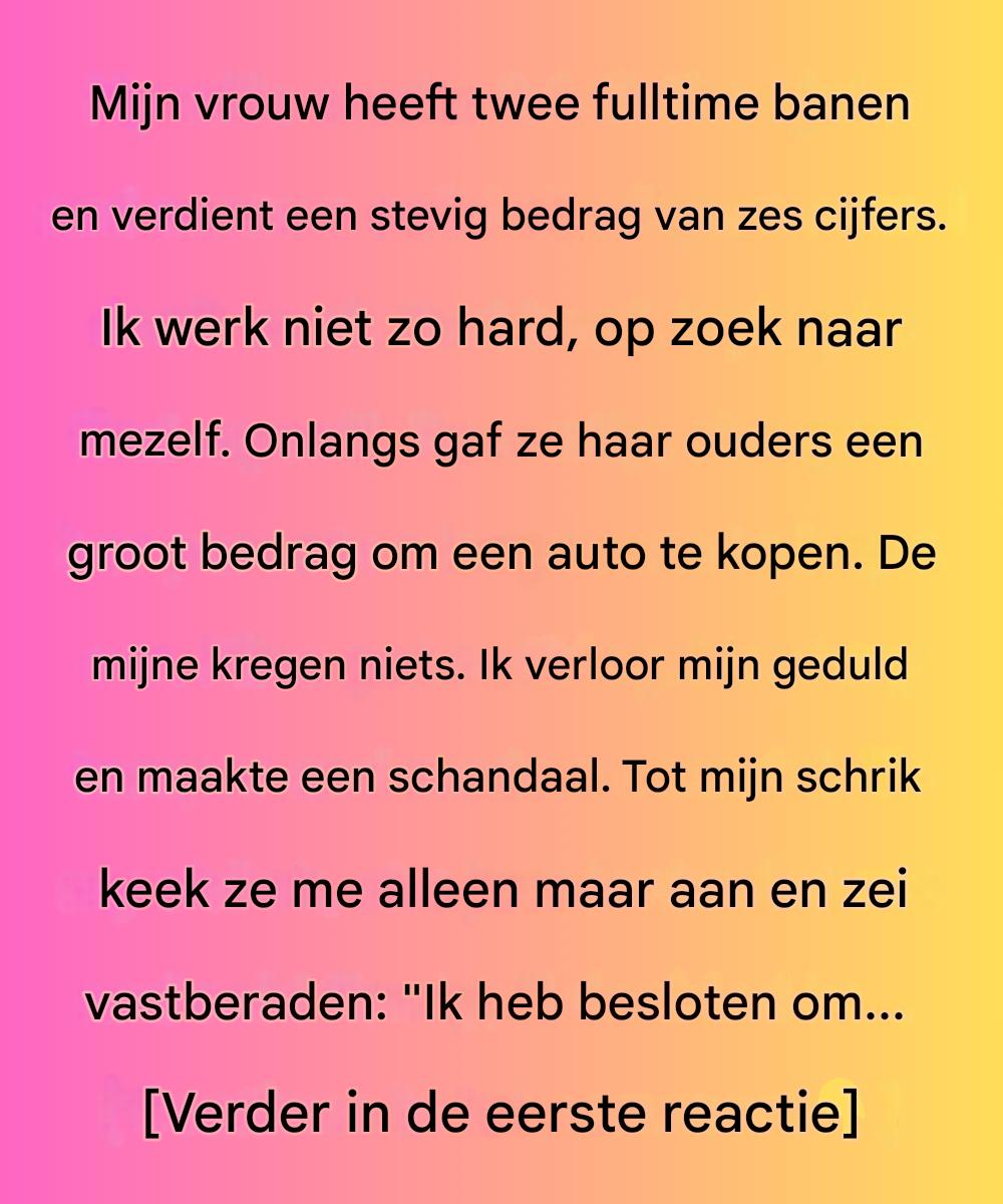 Mijn vrouw wil haar enorme inkomen niet besteden aan de behoeften van mijn ouders.