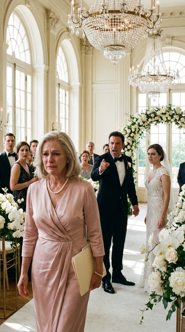 Ik draaide me om en liep naar de imposante smeedijzeren poorten. De lucht was gevuld met de zachte, elegante melodie van een strijkkwartet dat in de verte speelde. De geur van honderden witte bloemenbogen vulde de lucht. Tweehonderd gasten – familie, vrienden, buren – arriveerden, prachtig gekleed, lachend en pratend terwijl ze naar de ingang stroomden.