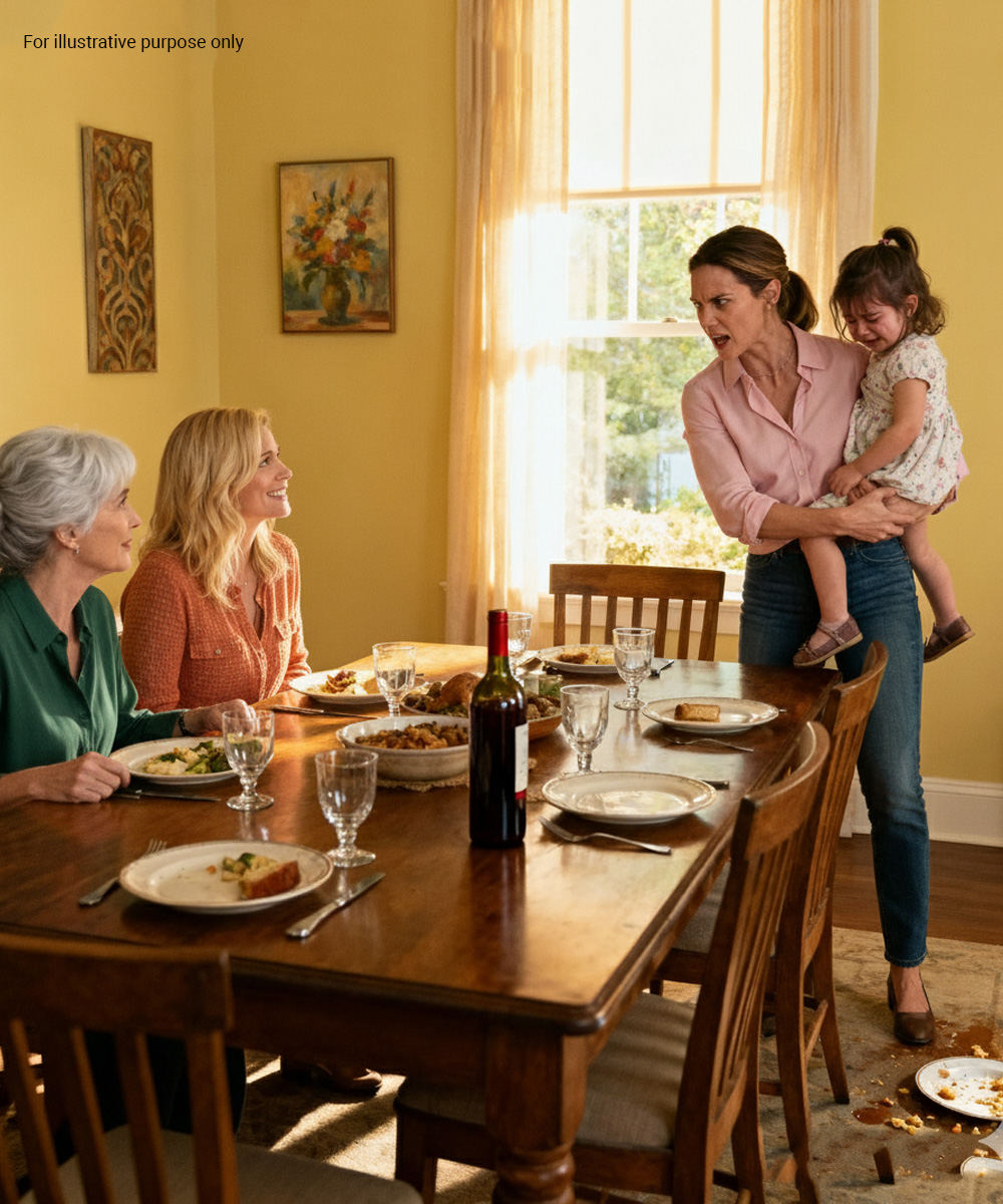 Ondertussen zat ik stilletjes naast mijn driejarige dochter Emma en hielp haar haar eten in kleine stukjes te snijden. Ze had zich de hele avond keurig gedragen, zachtjes met haar benen onder de stoel gezwaaid en geprobeerd mee te praten, hoewel niemand haar veel aandacht schonk.