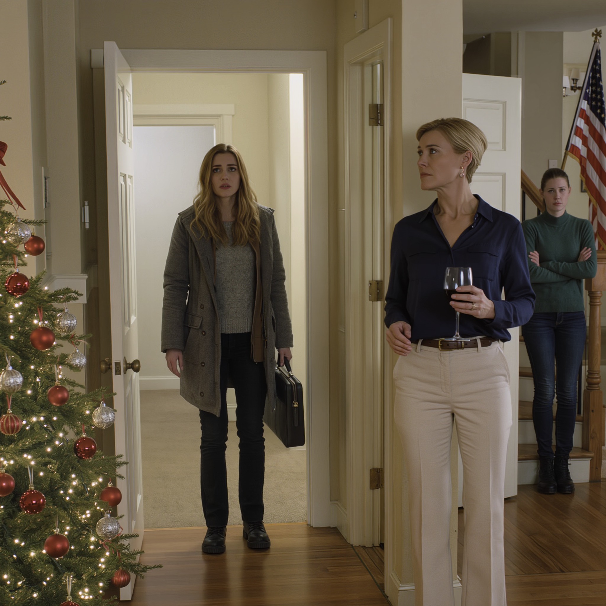 Mijn moeder verscheen in de deuropening, een glas wijn in haar hand, haar gezicht zo koud als graniet in de winter.