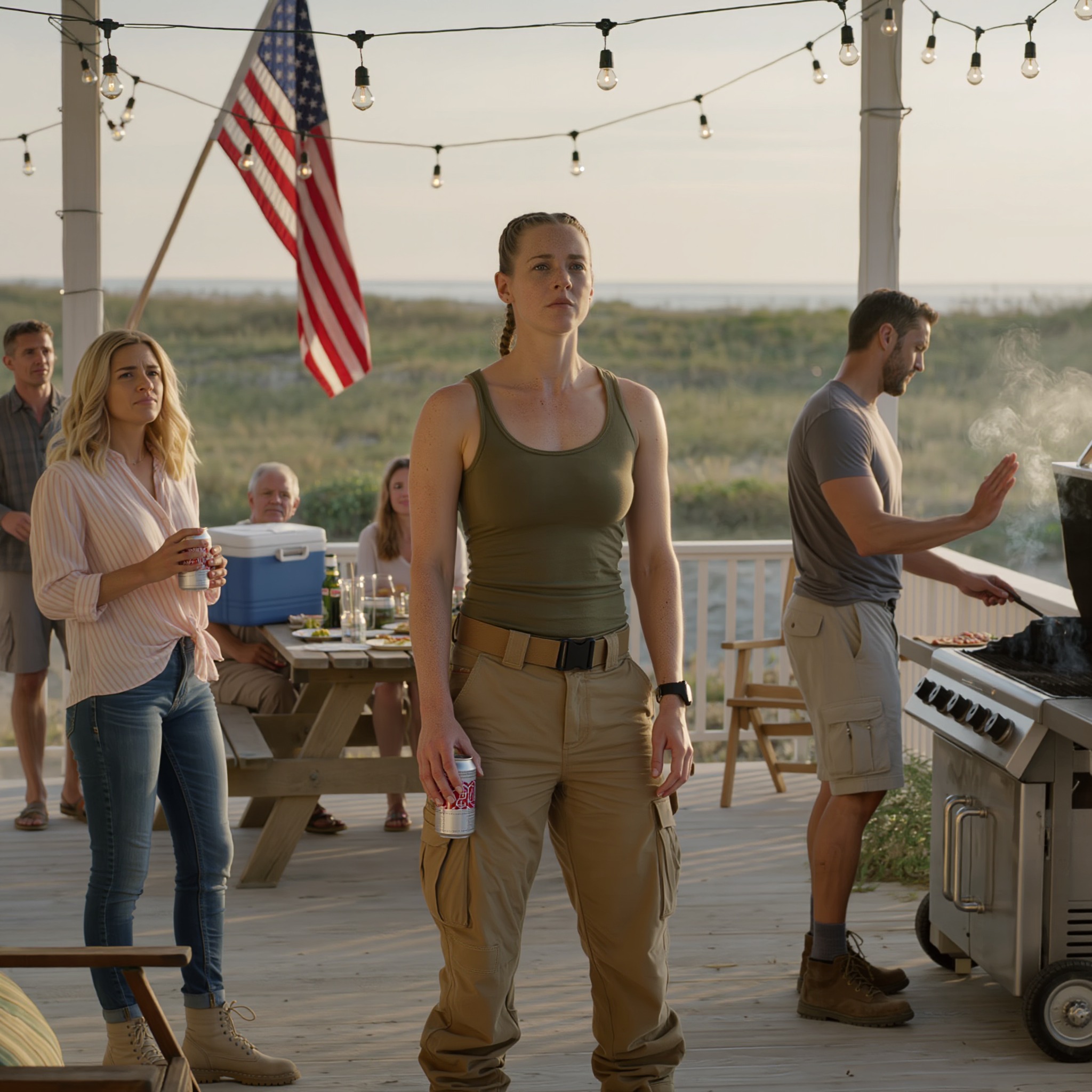 Mijn zus maakte me belachelijk tijdens de barbecue, totdat haar man, een Navy SEAL, mijn roepnaam hoorde: ‘Excuses aanbieden. NU.’