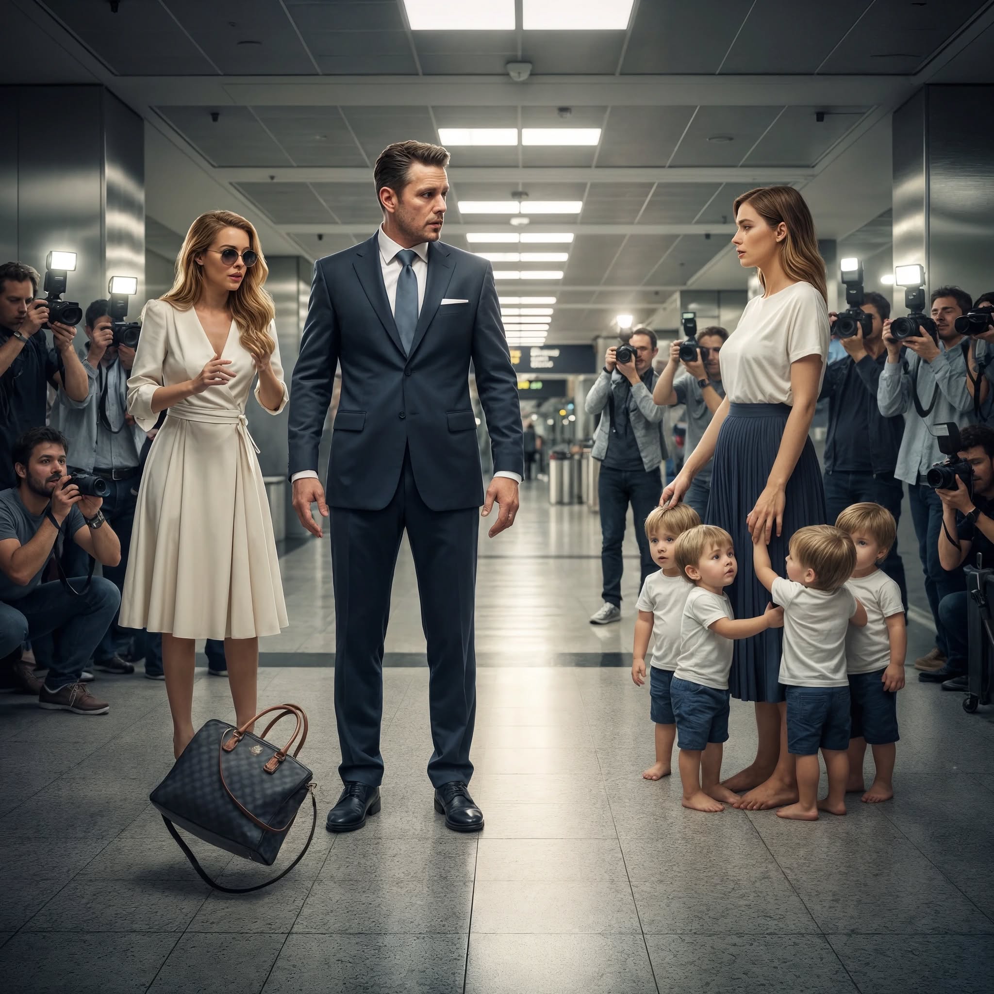 De terminal gonsde van de activiteit: haastige zakenlui, overvolle gezinnen, vluchtaankondigingen. Maar naarmate ze verder liepen, nam het lawaai af. Gesprekken stopten. Ogen ontmoetten elkaar. Telefoons werden geheven, klaar om op te nemen.