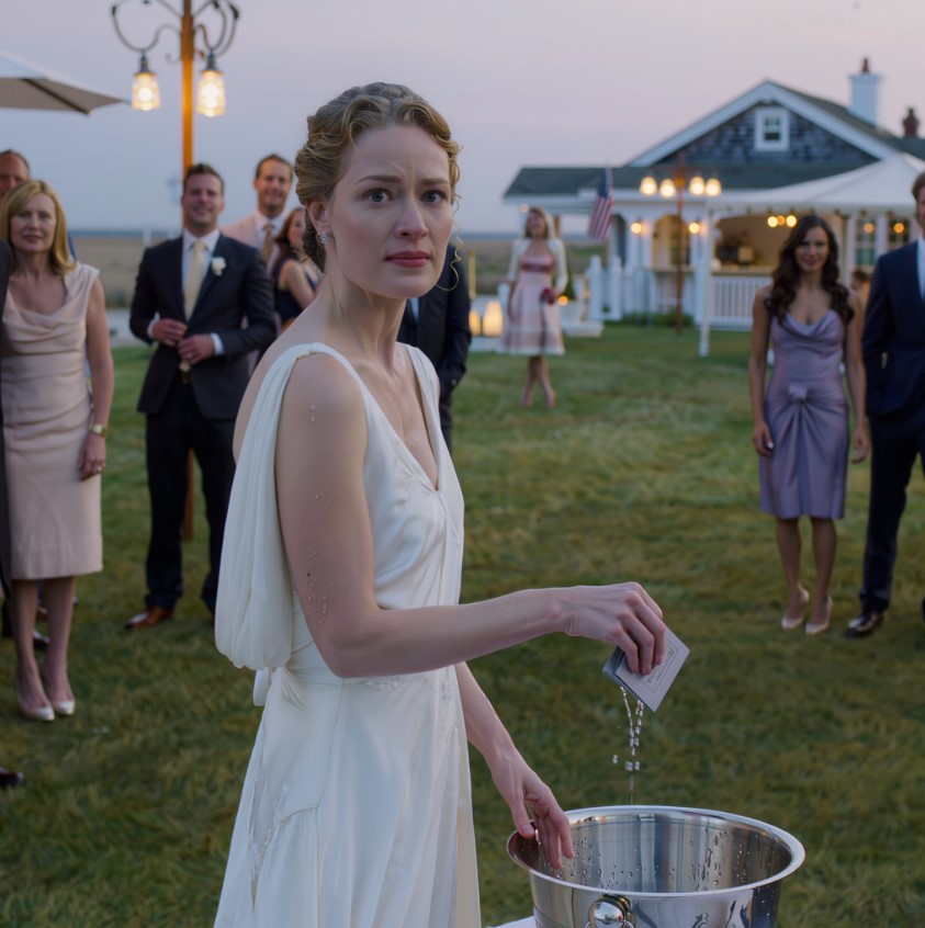 De band speelde nog steeds. De tentverlichting gaf een warm, goudkleurig licht. De zilte zeelucht van Newport drong naar binnen, het soort lucht waar mensen voor betalen. En toch, toen het pasje in de ijskoude, met champagne doorspekte brij, barstte de hele tent los alsof het de clou van het jaar was.