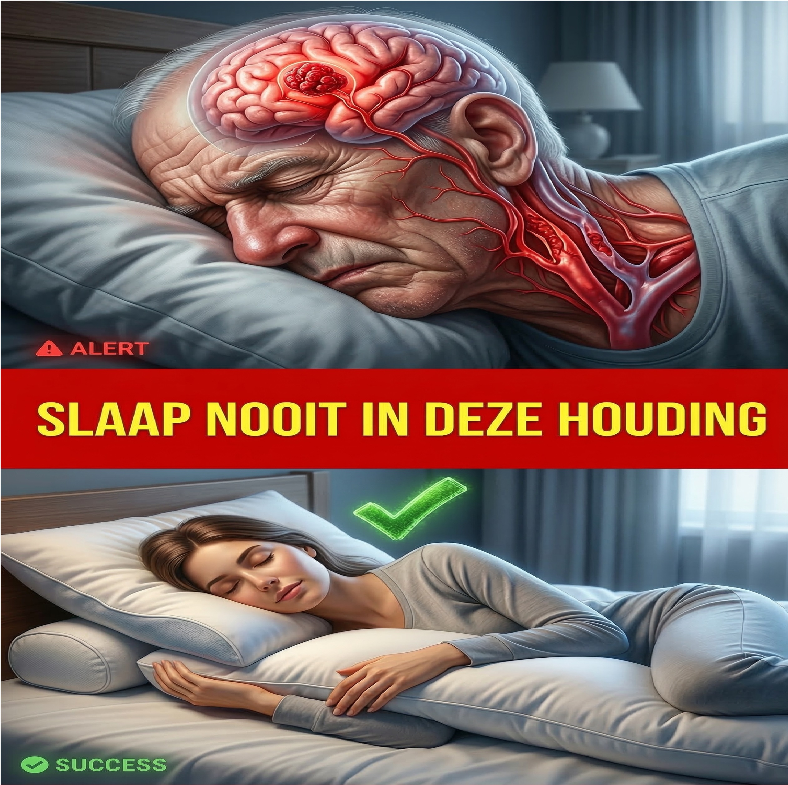 De houding die je nacht na nacht aanneemt, heeft direct invloed op de zuurstofvoorziening van je hersenen, de bloedsomloop en zelfs de stabiliteit van je bloeddruk. Kortom, alles waar je hart en hersenen blij van worden… of juist bang voor zijn.