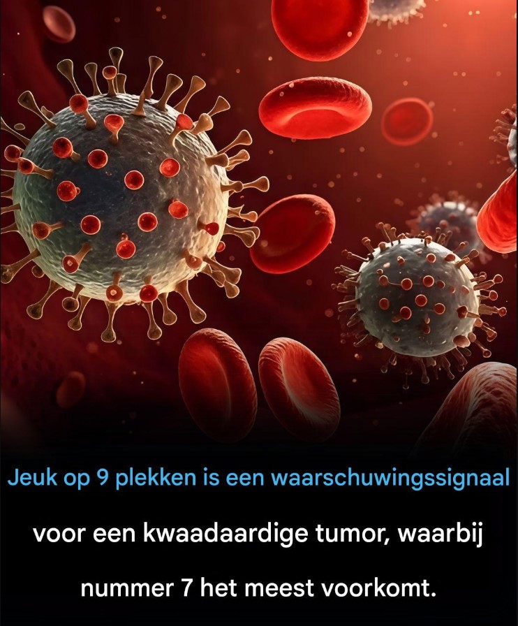 Jeuk op 9 plekken: een waarschuwingssignaal voor kwaadaardige tumoren, waarbij plek 7 het meest voorkomt.