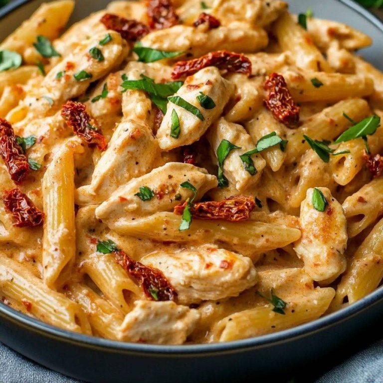 Dit pastagerecht is een heerlijke en gemakkelijke maaltijd, perfect voor een doordeweekse avond. De combinatie van kip, zongedroogde tomaten en een romige parmezaansaus is onweerstaanbaar lekker.