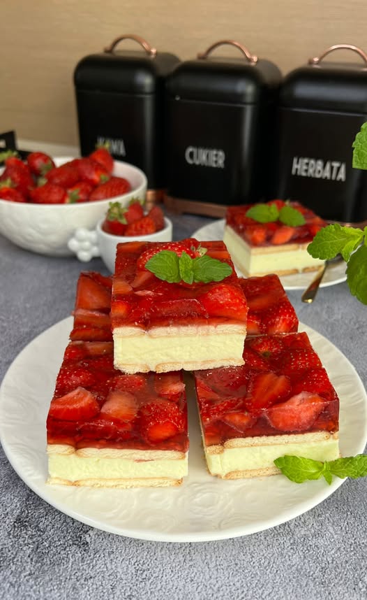 Deze puddingtaart is een heerlijk licht en verfrissend dessert, perfect voor warme zomerdagen! De combinatie van de koekjesbodem, romige pudding, verse aardbeien en fruitgelei maakt het een ware traktatie.