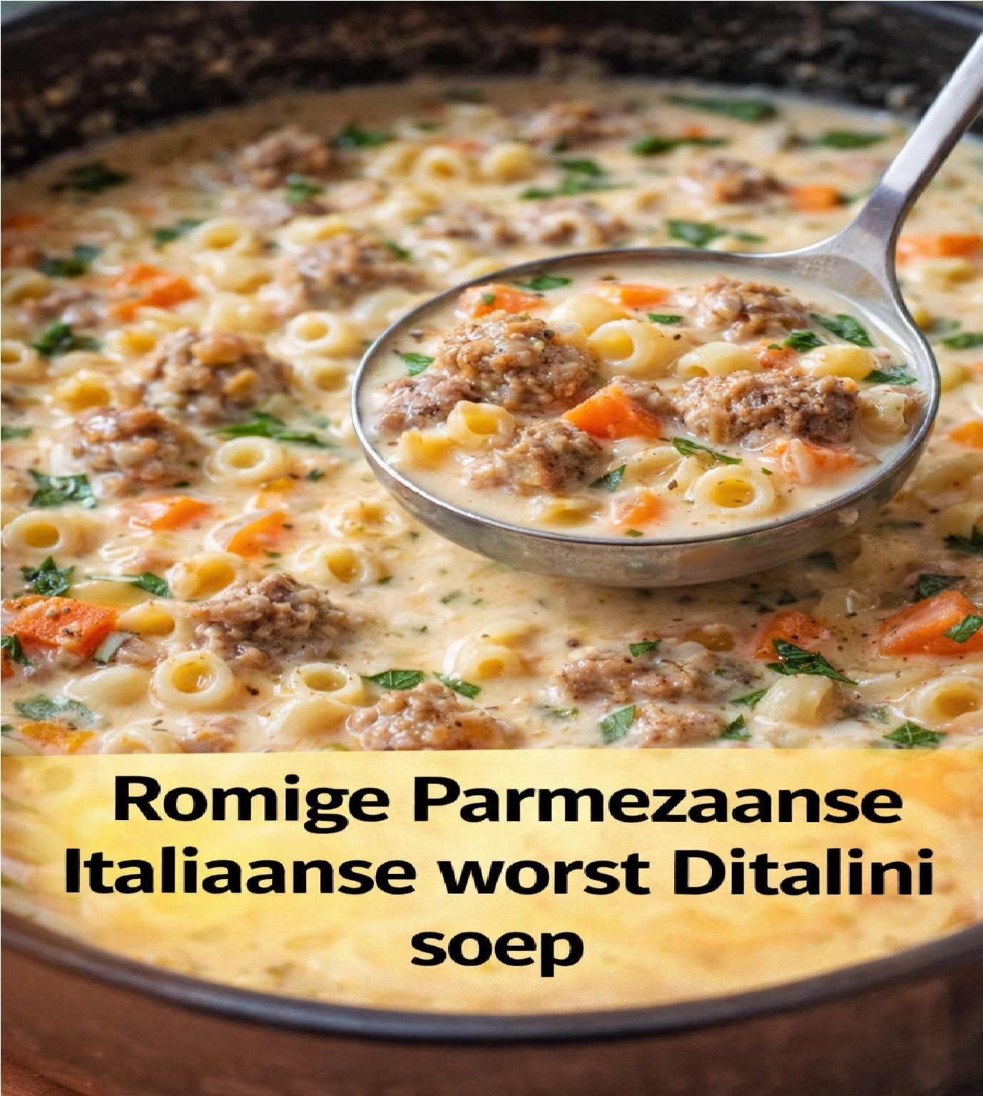Dit is niet zomaar soep – het is een warme omhelzing in een kom, waar goudbruin gebakken worst, tomaten met kruiden en malse ditalini zich vermengen in een fluweelzachte bouillon met Parmezaanse kaas. Geïnspireerd door de keuken van oma, maar aangepast aan de moderne doordeweekse avond, biedt deze soep een diepe, hartige rijkdom zonder urenlang te hoeven sudderen. De room is niet zwaar – het is een zijdezachte sluier die de nootachtige diepte van de gerijpte kaas draagt, terwijl de kleine pastabuisjes elke druppel smaak vasthouden. Klaar in minder dan 40 minuten, is dit het soort maaltijd waar iedereen graag langer van blijft genieten aan tafel.