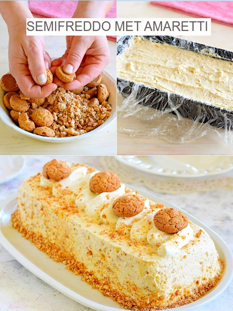 Verkruimel de amaretti: Doe de amaretti in een kom en verkruimel ze grof. Meng ze door het eidooiermengsel.