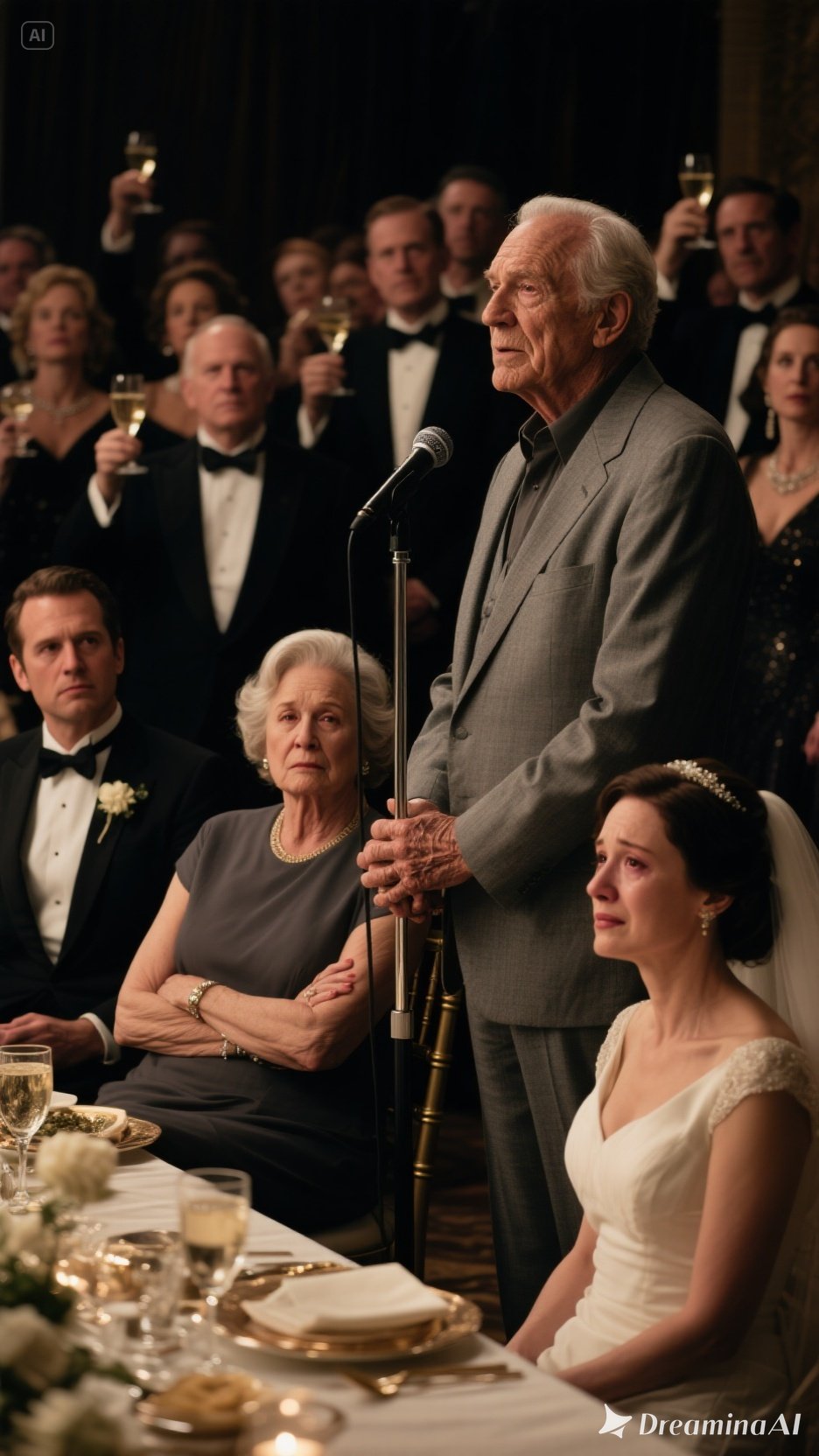 Een doodse, verstikkende stilte daalde neer over de zaal. Het applaus verstomde alsof het er nooit geweest was. De gasten stonden als verbijsterd, niet wetend hoe ze moesten reageren op zo’n grove en vernederende vertoning.