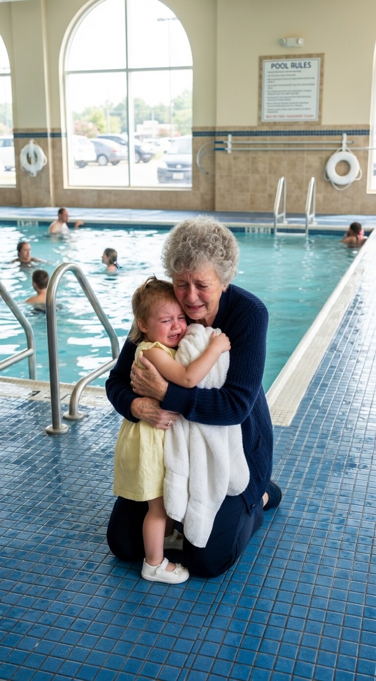 Tijdens een familiefeestje bij het zwembad weigerde mijn vierjarige kleindochter haar zwempak aan te trekken. « Ik heb buikpijn, » mompelde ze, terwijl ze apart van de rest ging zitten. Mijn zoon wuifde het weg en zijn vrouw waarschuwde me om me er niet mee te bemoeien. Maar toen ik de badkamer inliep, glipte het kleine meisje achter me aan naar binnen. Haar handen trilden terwijl ze fluisterde: « Oma… de waarheid is… mama en papa… »