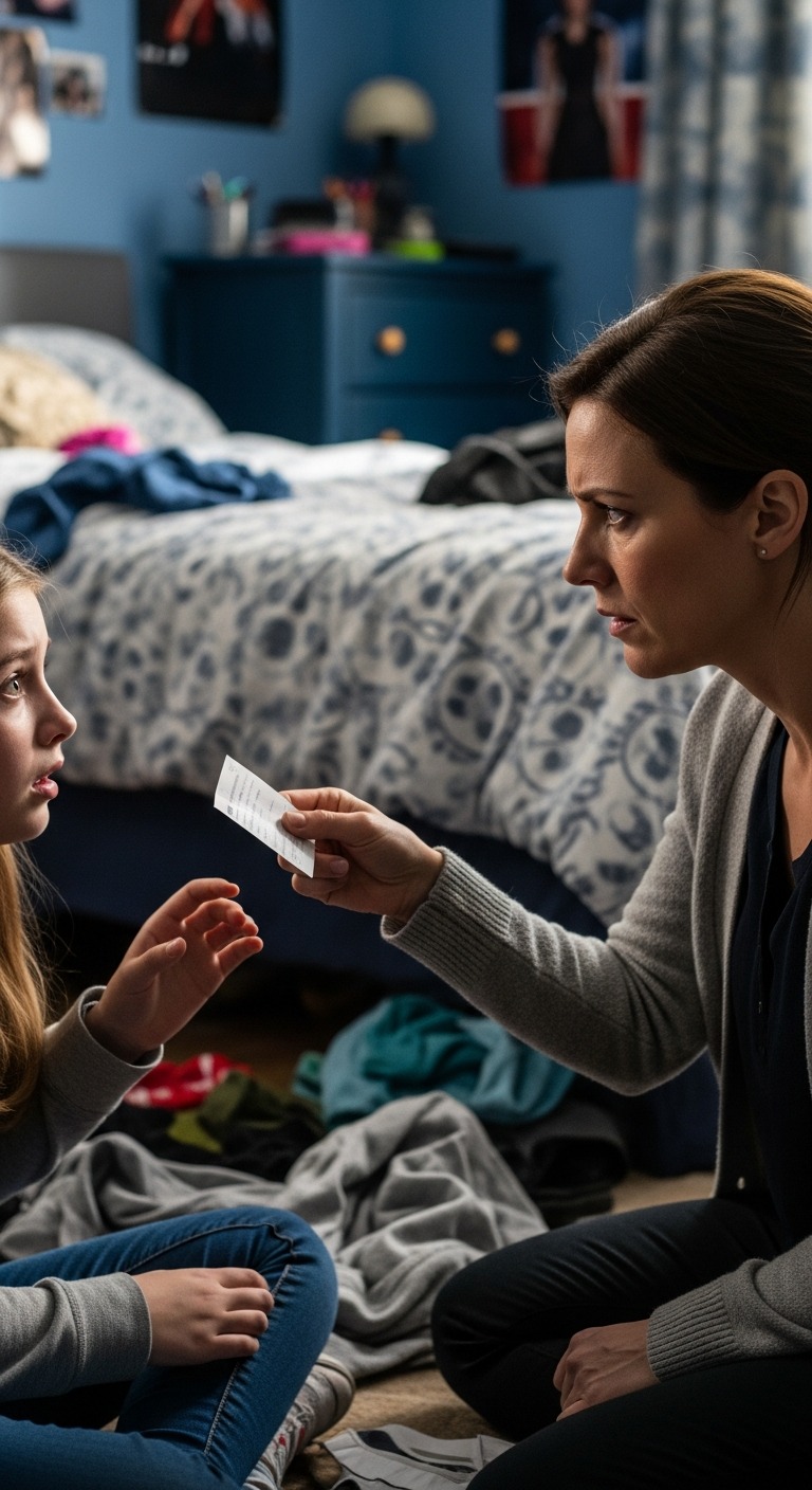 Ik knikte en volgde mijn dochter door de gang. Zodra we haar kamer binnenkwamen, sloot ze de deur snel, bijna te abrupt. ‘Wat is er, schat? Je maakt me bang.’