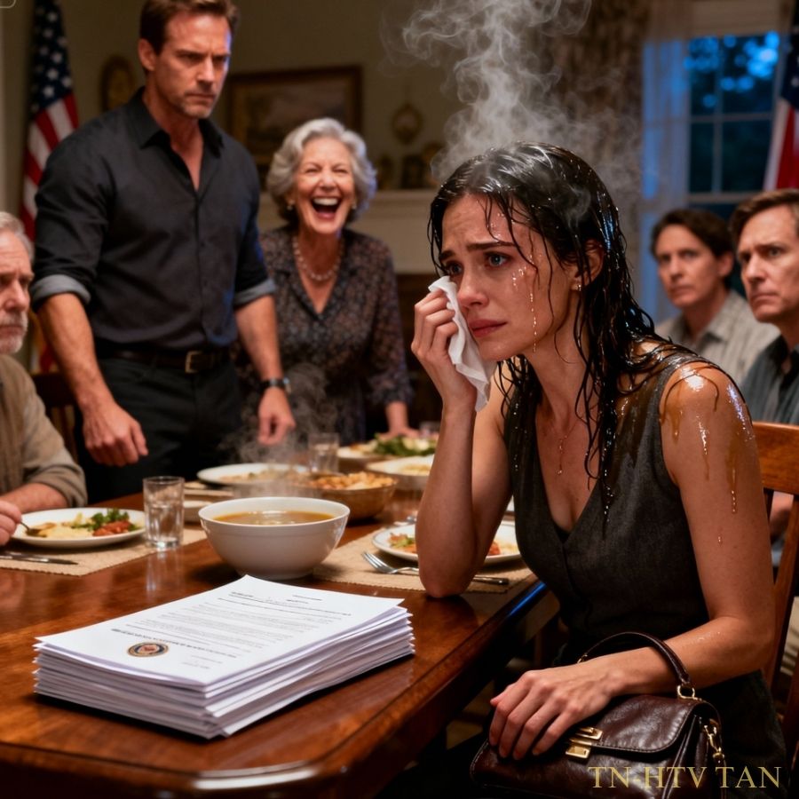 Toen ik mijn servet op de grond liet vallen en me voorover boog om het op te rapen, hoorde ik een spottende opmerking over « mijn gebruikelijke onhandigheid ». Ik besloot het te negeren. Maar net toen ik opstond, tilde Andrew de terrine op en goot zonder waarschuwing de kokende inhoud over mijn hoofd. De gloeiendhete vloeistof gleed langs mijn gezicht, mijn nek en mijn schouders. De pijn was direct, maar wat me nog meer verlamde, was het gelach van zijn moeder. « Oh, Andrew, je bent zo dramatisch! » lachte Helen, alsof het een grap was.
