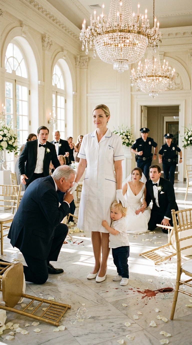 Tijdens het huwelijksdiner van mijn stiefzus stelde ze me voor en lachte: « Dit is mijn stiefzus – gewoon een nutteloze verpleegster. » De vader van de bruidegom staarde me aan: « Wacht, jij bent het meisje dat… » De hele zaal verstijfde.