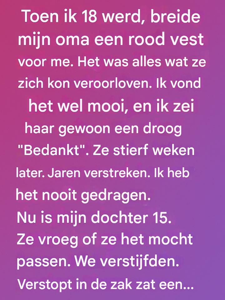 Toen ik 18 werd, gaf mijn oma me een rood vestje –