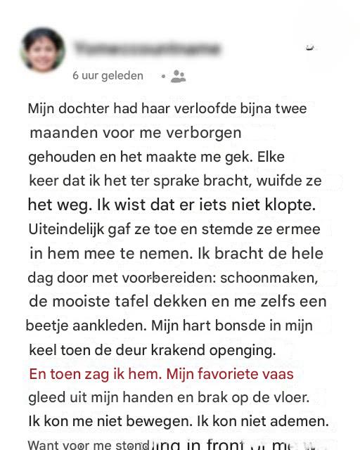 Toen mijn dochter mij aan haar verloofde voorstelde, kon ik mijn ogen niet geloven.