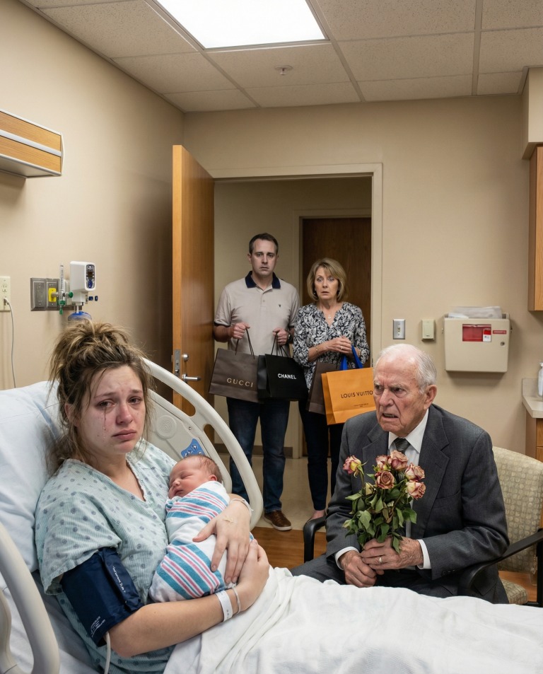 Toen mijn grootvader binnenkwam nadat ik bevallen was, waren zijn eerste woorden: « Lieve, was die 250.000 die ik je elke maand stuurde niet genoeg? » Mijn hart stond stil. « Opa… welk geld? » fluisterde ik. Op datzelfde moment stormden mijn man en schoonmoeder binnen met armen vol luxe tassen – en ze verstijfden. Hun gezichten trokken wit weg. Toen besefte ik dat er iets vreselijk mis was…
