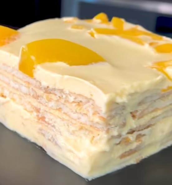 Deze eenvoudige maar verrukkelijke koekjestaart is perfect voor een snelle traktatie zonder dat je de oven hoeft aan te zetten. De zachte koekjes, de romige vulling en de zoete perziken vormen een heerlijke combinatie. Ideaal voor een verjaardag, een picknick of gewoon als lekker dessert.