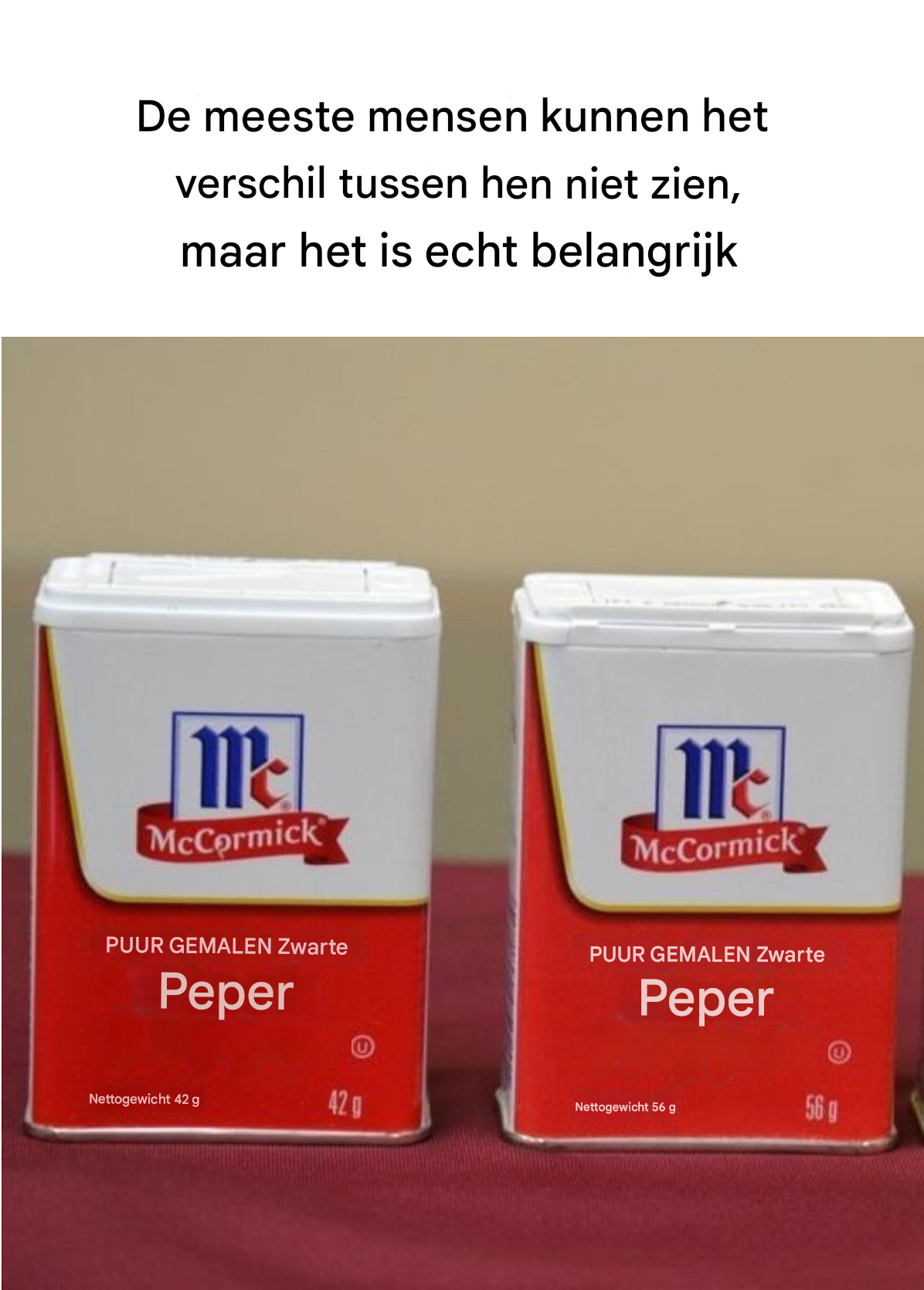 McCormick heeft de hoeveelheid peper in zijn potten met 25% verminderd. Hun blikken bevatten vroeger ongeveer 237 gram peper, maar nu ongeveer 170 gram. Watkins Inc. spande een rechtszaak aan, omdat McCormick visuele trucjes gebruikt om hun blikken meer peper te laten lijken dan ze in werkelijkheid bevatten.