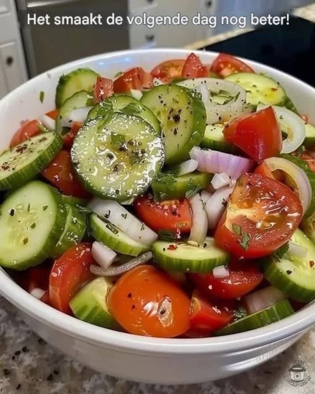 Ah, een frisse komkommer- en tomatensalade — eenvoudig, verfrissend en perfect als licht bijgerecht! Hier volgt een gedetailleerde uitleg: