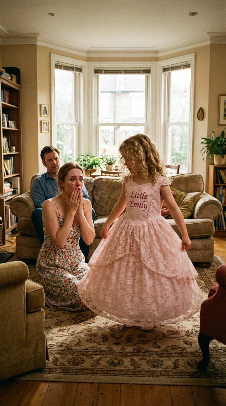 ‘Ik vind het niet erg,’ zei Maya, terwijl ze probeerde dapper te blijven. ‘Het is nog steeds mooi. Ik kan het dragen, ook al staat de naam er niet op.’