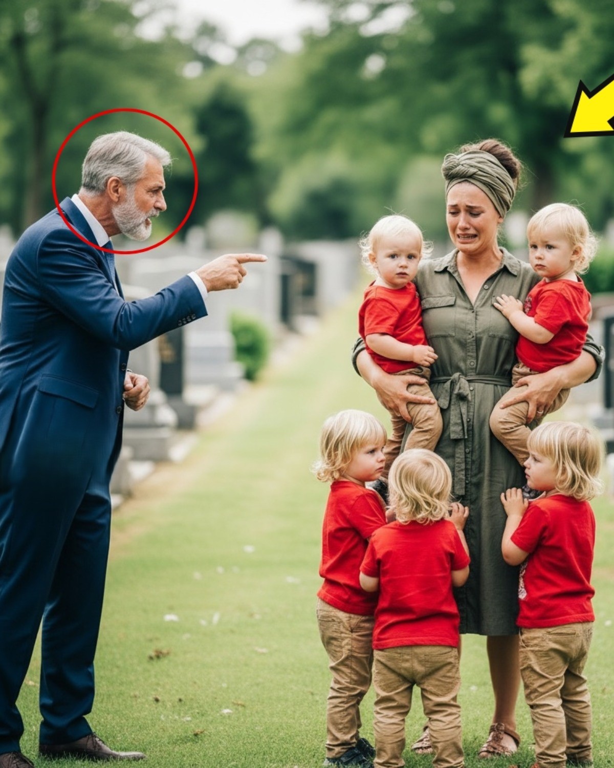 Haar handpalm rustte op de koude steen, alsof ze probeerde het leven te voelen waar alleen de dood nog heerste. De tweeling volgde haar blik, voor een keer stil, alsof ze instinctief aangetrokken werden tot de naam die erin gegraveerd stond: