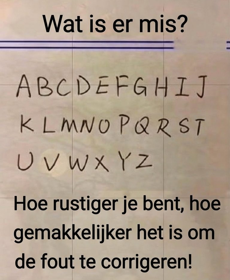 Veel mensen die hiernaar kijken, voelen meteen dat er “iets niet klopt”. Je hersenen slaan alarm: er moet een letter ontbreken. En precies dát maakt deze afbeelding zo interessant.