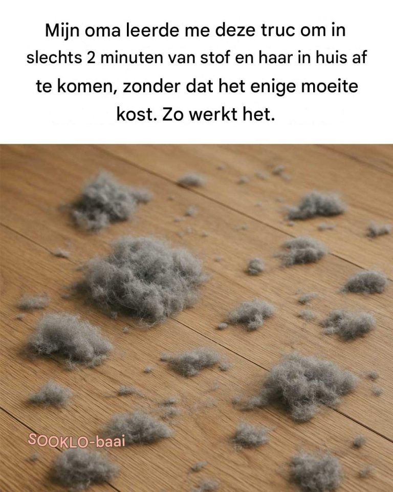 Door simpelweg de handschoenen aan te trekken en met haar handen over het oppervlak te gaan, kon ze stof en haar netjes opstapelen. Deze truc was niet alleen efficiënt, maar bespaarde ook tijd en energie. Het was een perfect voorbeeld van hoe een beetje creativiteit een gewoon voorwerp kan veranderen in een krachtig schoonmaakmiddel.