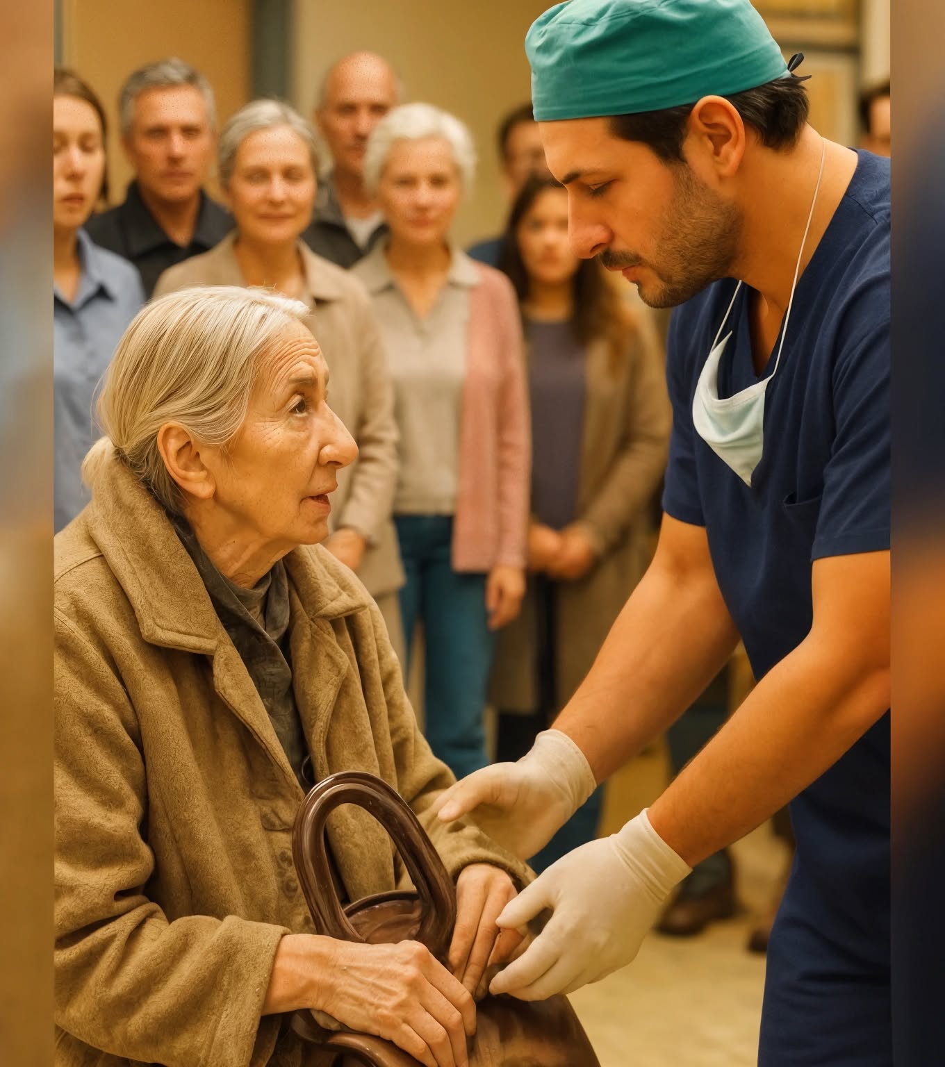 De deur van de kamer ging geluidloos open, alsof ze aarzelde de spanning die er hing te verstoren. Een oudere vrouw stond in de deuropening. Ze droeg een oude, verschoten jas, ooit misschien mosterdgeel, nu de kleur van een stoffige weg. In haar handen, gebald van nervositeit, klemde ze een versleten leren tas met gerafelde hoeken. Haar gezicht was gegroefd met rimpels, elk leek een verhaal uit het verleden, een nacht doorgebracht naast een operatietafel of het bed van een gedoemde patiënt. Maar haar blik… haar blik was kalm, diep, gevuld met een onpeilbare vermoeidheid. Er was geen agitatie in te bespeuren: alleen de stoïcijnse aanvaarding van alles wat het leven brengt.