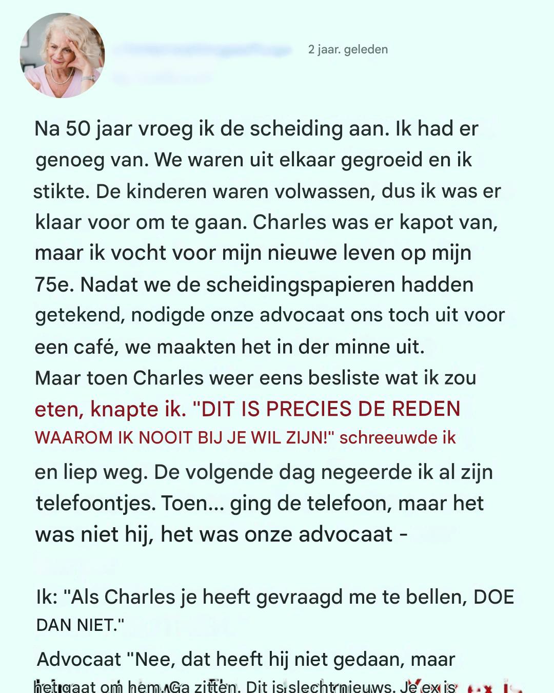 Ze vroeg na 50 jaar de scheiding aan en kreeg toen het telefoontje dat alles veranderde