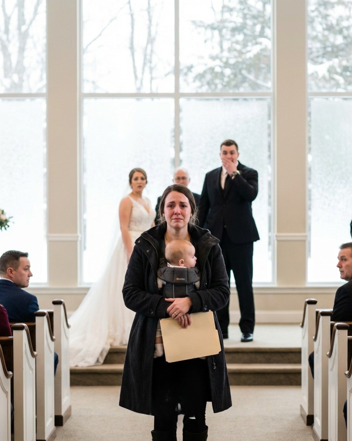 Zes weken nadat mijn man mij en onze pasgeboren baby in een sneeuwstorm had achtergelaten, liep ik zijn bruiloft binnen met het enige dat hij nooit voor mogelijk had gehouden dat ik zou kunnen bereiken.